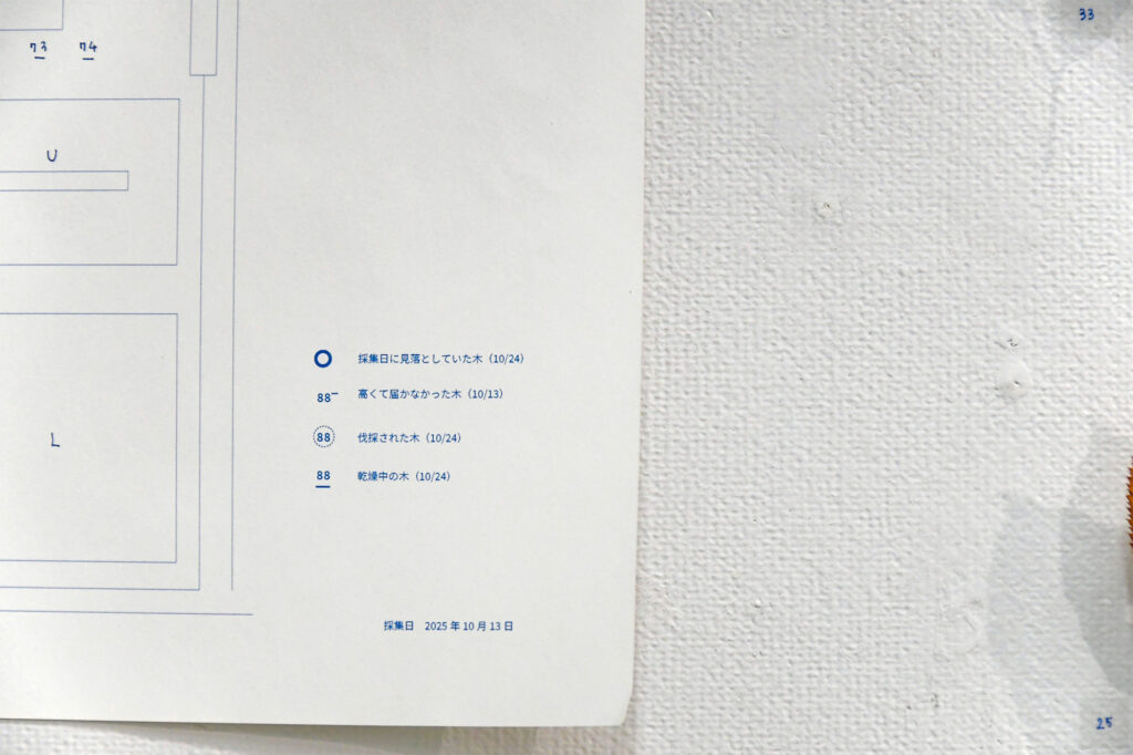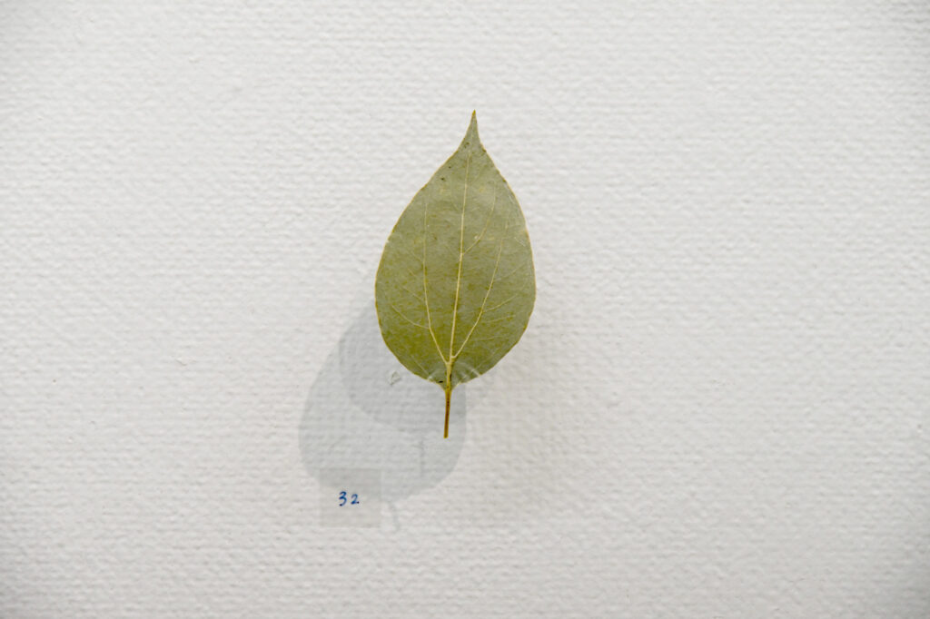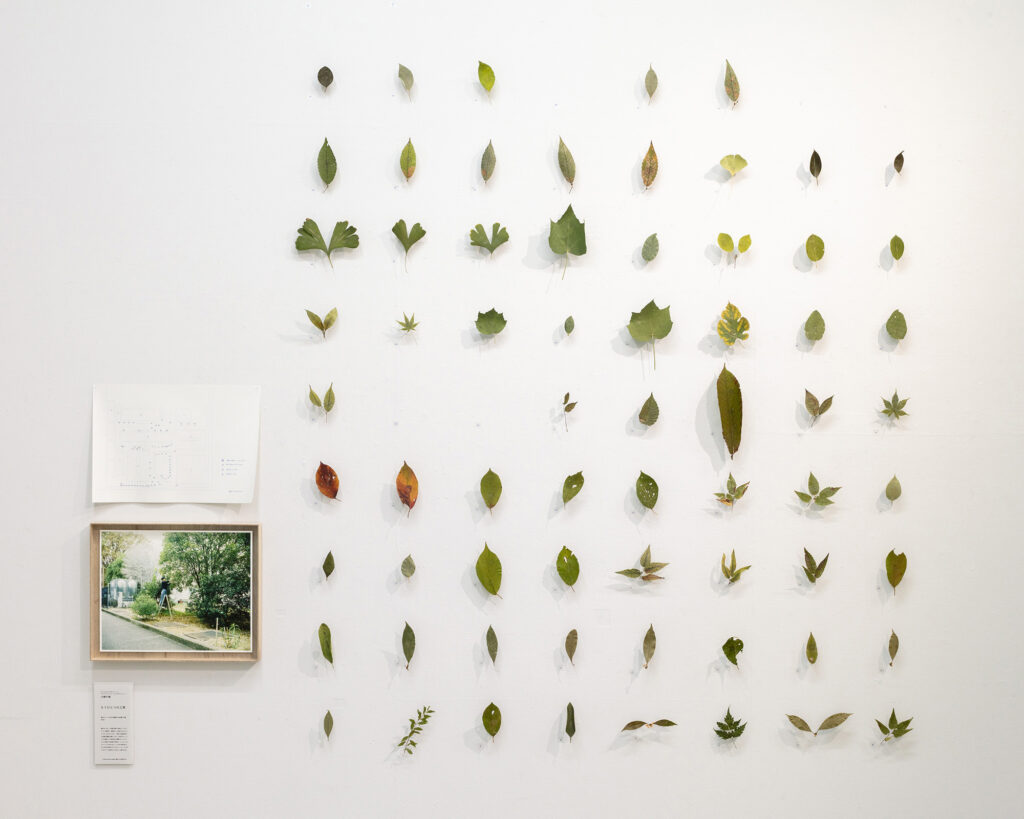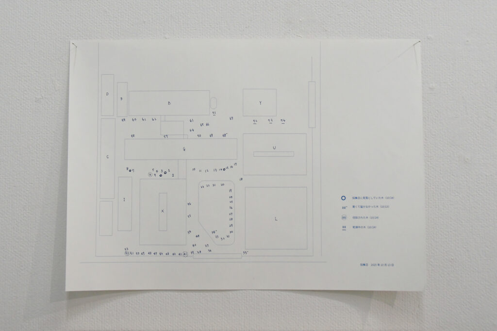 名古屋芸術大学 西キャンパス内の樹木をマッピングし、葉を1枚ずつ採取し、押し葉にした。