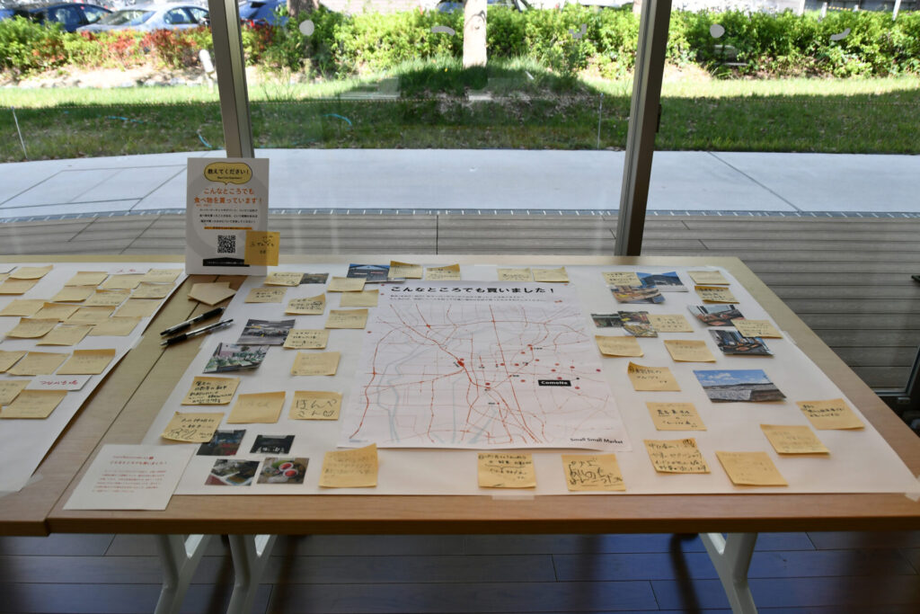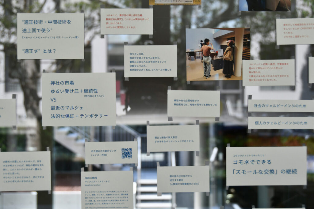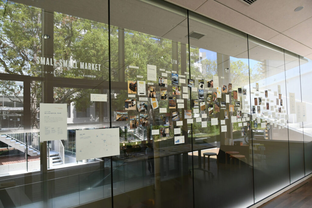 そこでは何が交換されて、どのように、場やつながりが形作られるのか。市(いち)のはじまる過程を探った「スモール・スモール・マーケット」プロジェクト3ヶ月間の記録を展示。